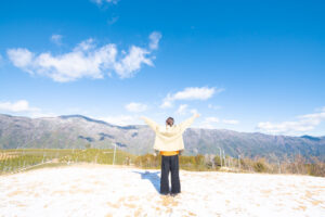 四国カルストへ向かう際は、冬用タイヤやチェーンなど冬装備で安全第一に。