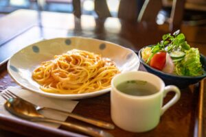 冬はほうじ茶がおすすめ。山あいの冷気で冷え切った体が、湯気の香ばしさでほどけていきます。